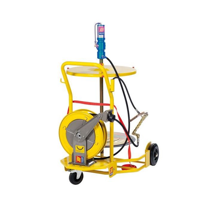 180 Kg air operated grease pump kit with MAY200 trolley and hose reel.