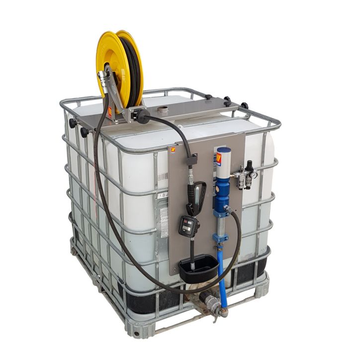 3:1 air operated ibc kits side mount pumps with hose reel and electronic metered oil nozzle